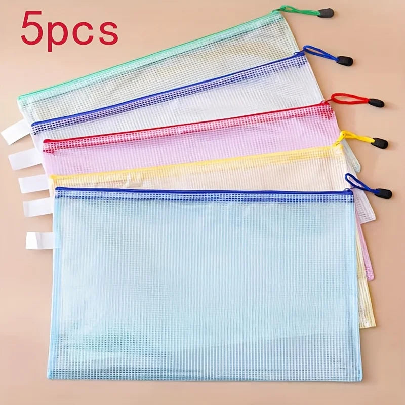 5-Pack A3 PVC Zipper Portfolio Folders with Mesh Design - Waterproof Art, Data, and Drawing Storage Bags